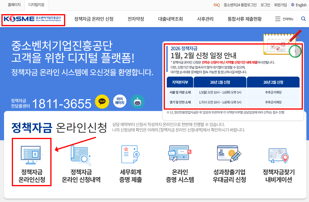 정책자금 온라인 신청