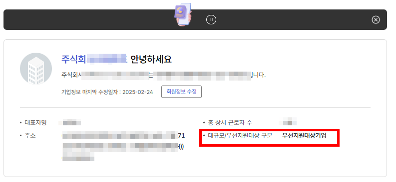 고용24 로그인 후 우선지원대상기업 항목 확인 후 지원 신청하세요.