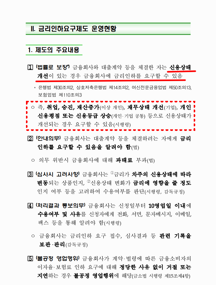 1️⃣ 대출 후 신용점수나 소득이 개선되었을 때, 은행에 금리 인하를 요구할 수 있는 제도 입니다.