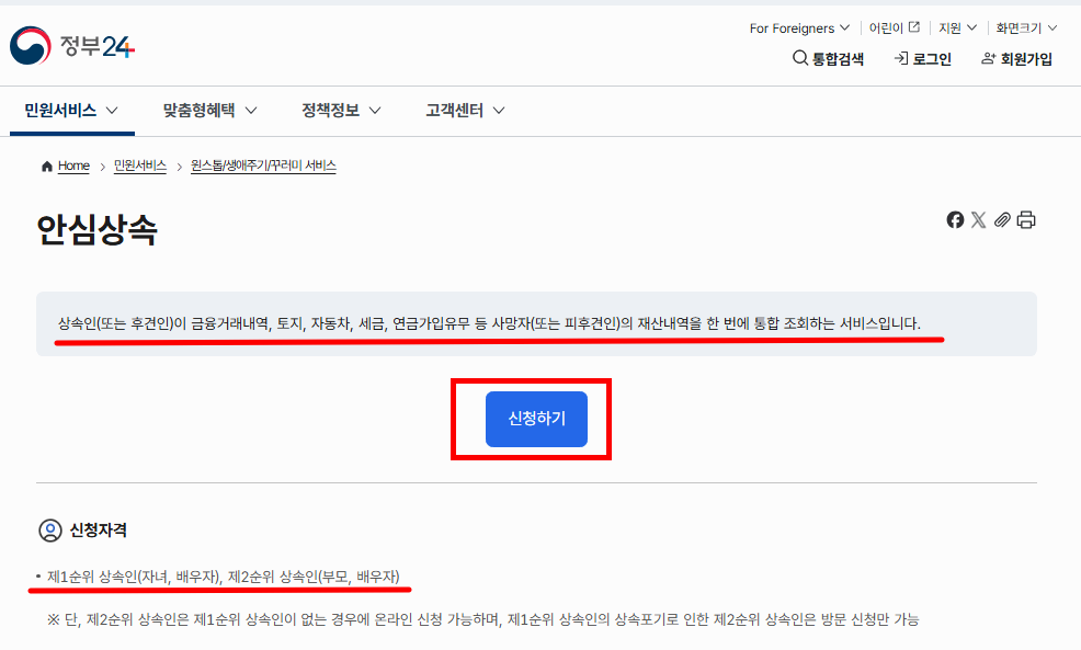 안심상속 원스톱 서비스 신청사이트 바로가기 (정부24)